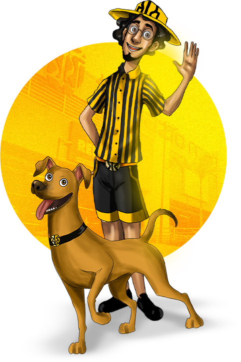 Caramelo é seu amigo inseparável, uma homenagem ao cãozinho que viveu na praça e era cuidado pelos moradores, mas que, infelizmente, nos deixou, se tornando símbolo da praça.